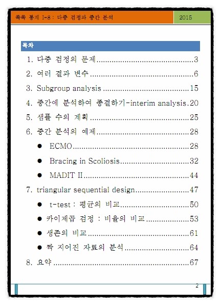 첫번째 책이었던 "한눈에 쏙쏙 의학 통계 배우기" 뒷부분에 부록에도 써 두었고,